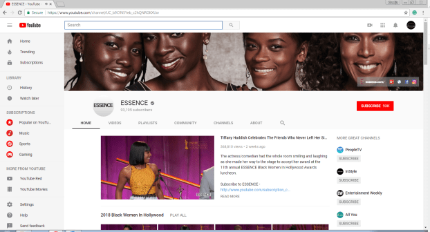 Essence does a great job of using their Youtube channel as a supplemental media outlet. Nearly everything that Essence puts in their magazine or on their website, is supplemented with content provided on their Youtube channel. Essence’s vlog content ranges from ‘How to Videos’ of hairstyles and makeup, fashion do’s and don’ts, cover shoot behind the scenes clips, and celebrity interview sneak peaks. With more than a 100 videos, 93k subscribers, and over 24 million views there’s a vast array of content that connects with their target audience.